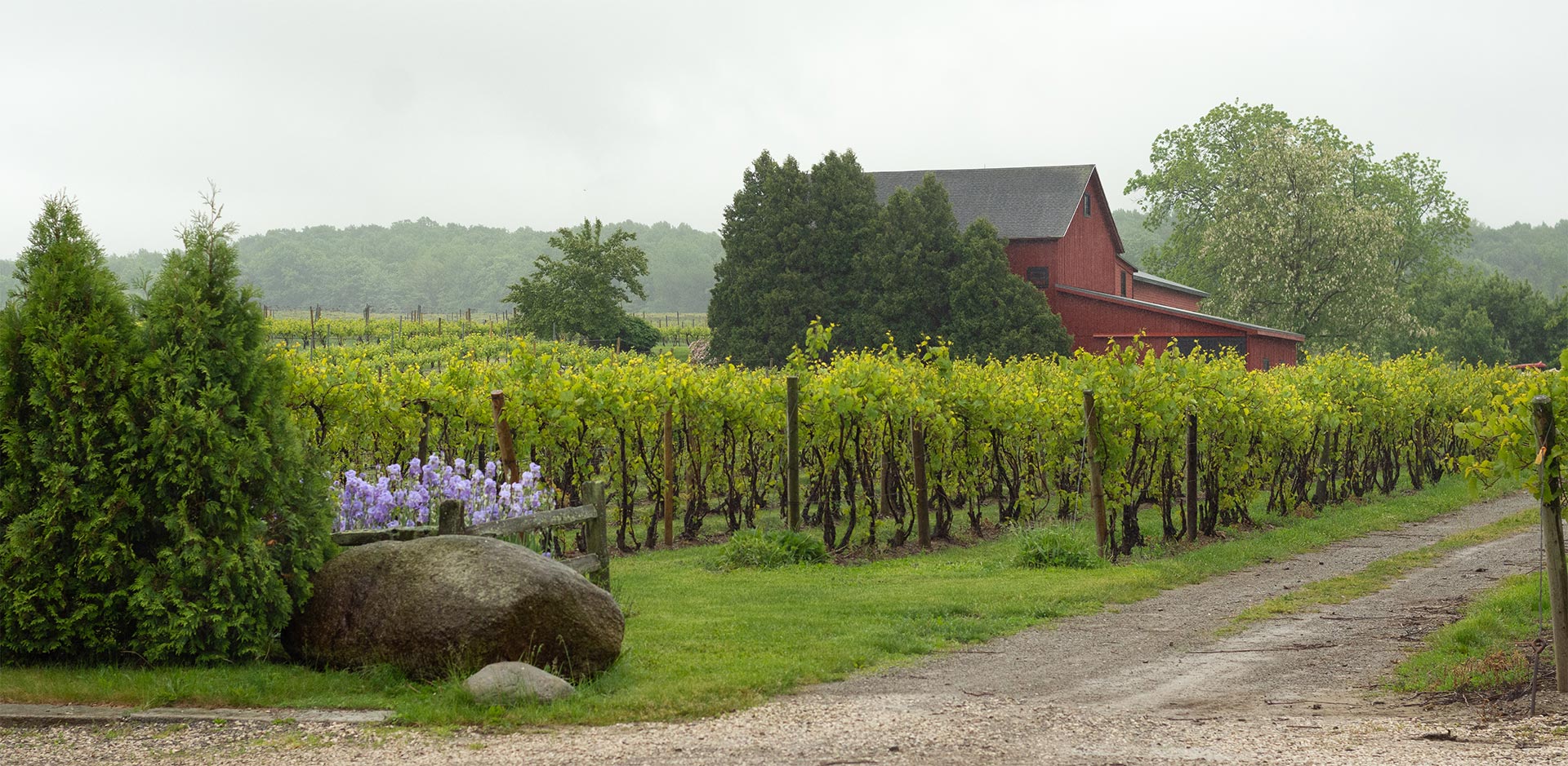 Thirteen grape varieties grow across 115 acres of estate vineyards, all within about 3000 feet of the winery. From heritage American grapes to French-American hybrids and classic vinifera like Riesling, Pinot Noir, and Chardonnay, every vineyard block is chosen for its fit with our Lake Erie climate — and for the kind of wine it can become.