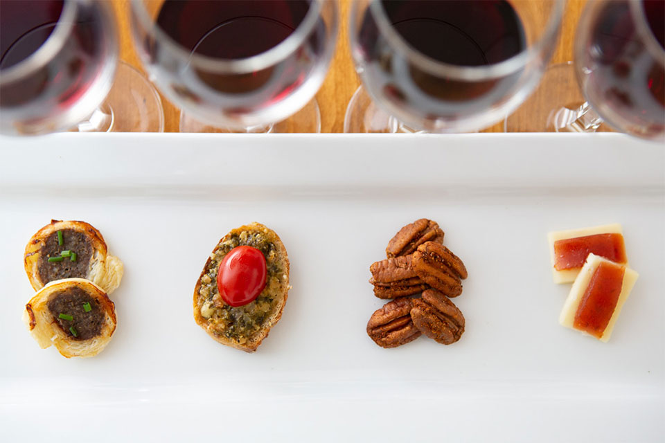 Includes a small pairing of cheeses and nuts.