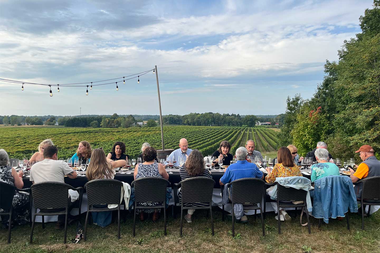 Located on the west side of the Estate, this venue has impressive vistas of Lake Erie and our northern-most vineyards and the winery buildings. Can accommodate 6-40 guests.