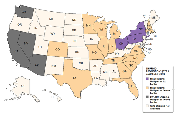 Free shipping on orders in multiples of six 375 or 750mL bottles (1.5L bottles not eligible).